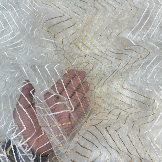 Embroidered Net Dupatta (Dyeable Zig-Zag)