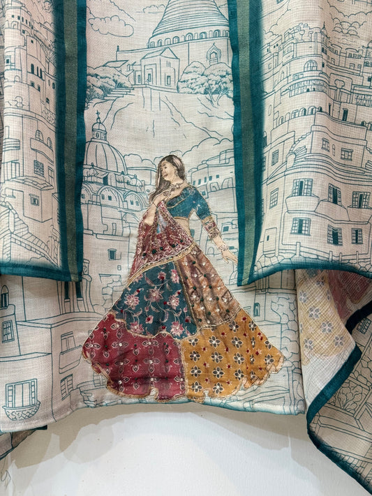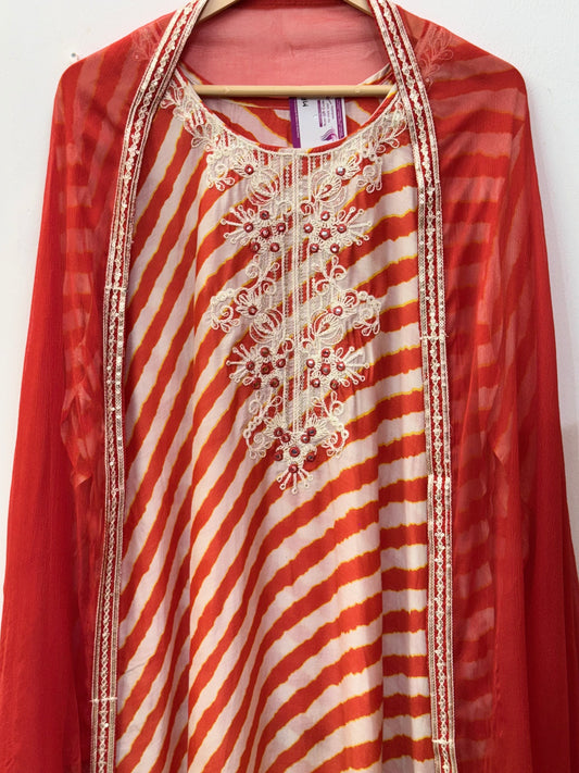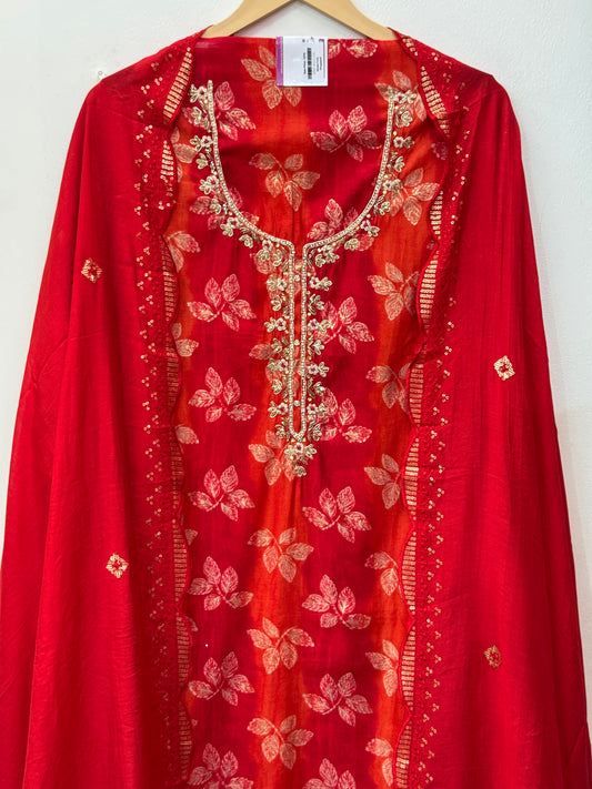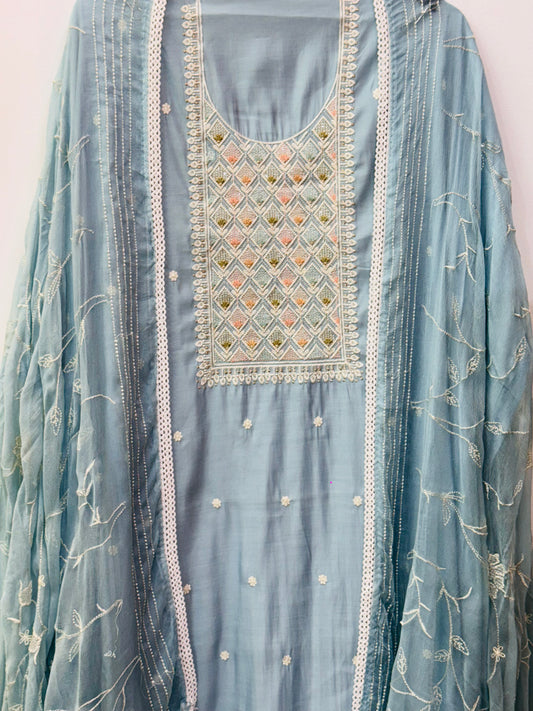 Beautiful Muslin Silk Suit with Machine Embroidery