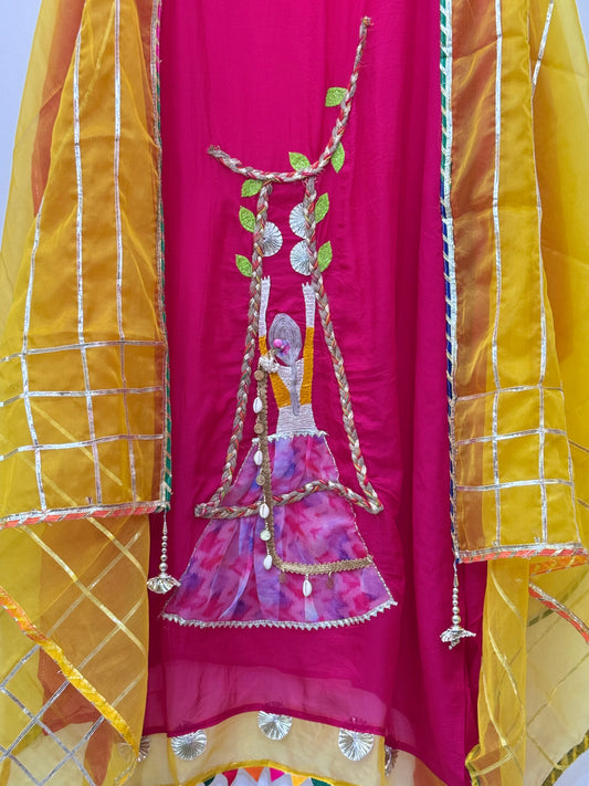 Haldi Special Modal Silk Suit with Hand Embroidery