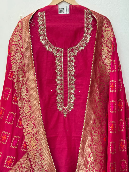 Embroidered Magenta Chanderi Suit (Karva Special)