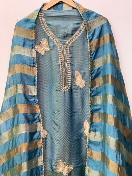 Pure Glass Opada Silk Suit with Heavy Embroidery