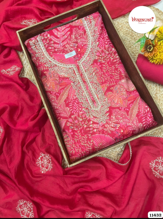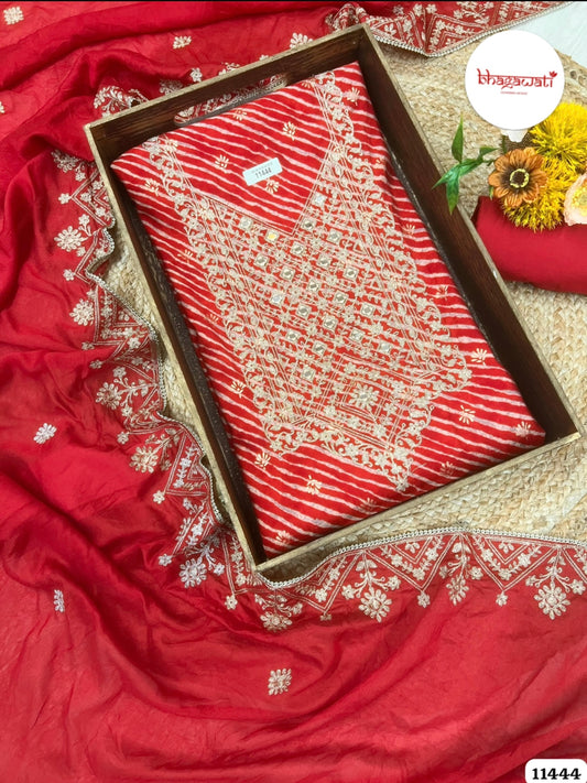 Beautiful Red Modal Silk Suit with Real Mirror Embroidery