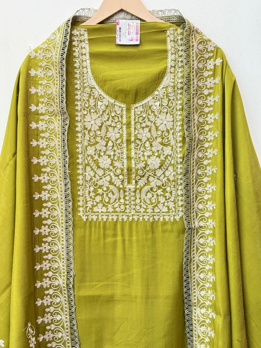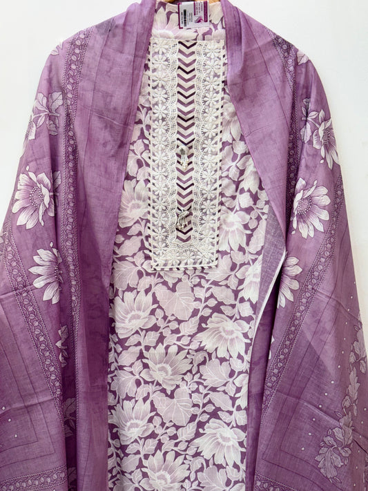 Beautiful thread work muslin suit with heavy Jaal work dupatta