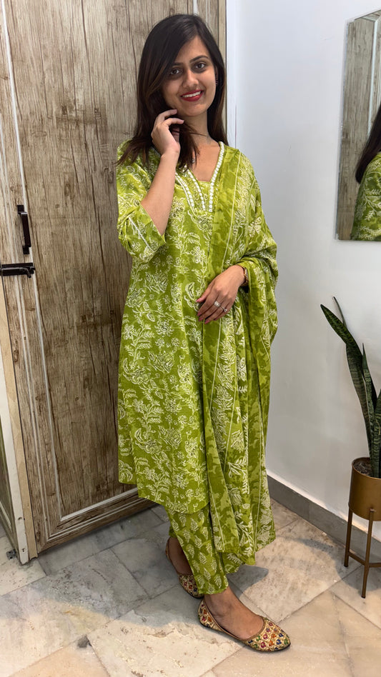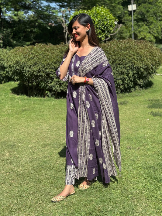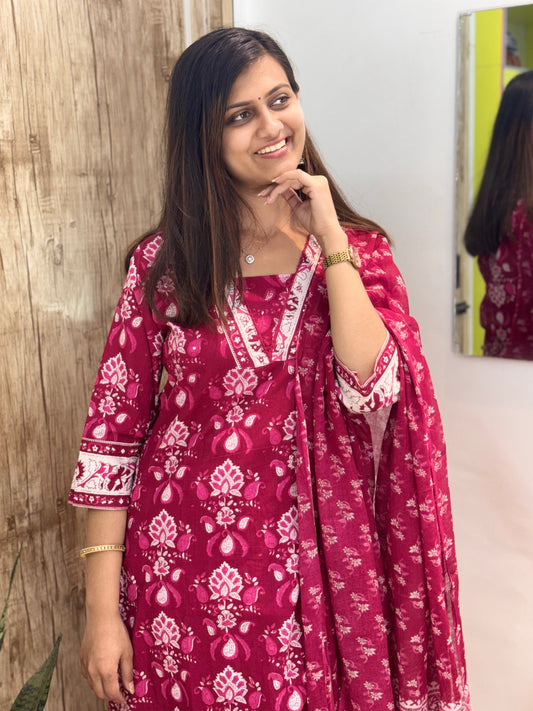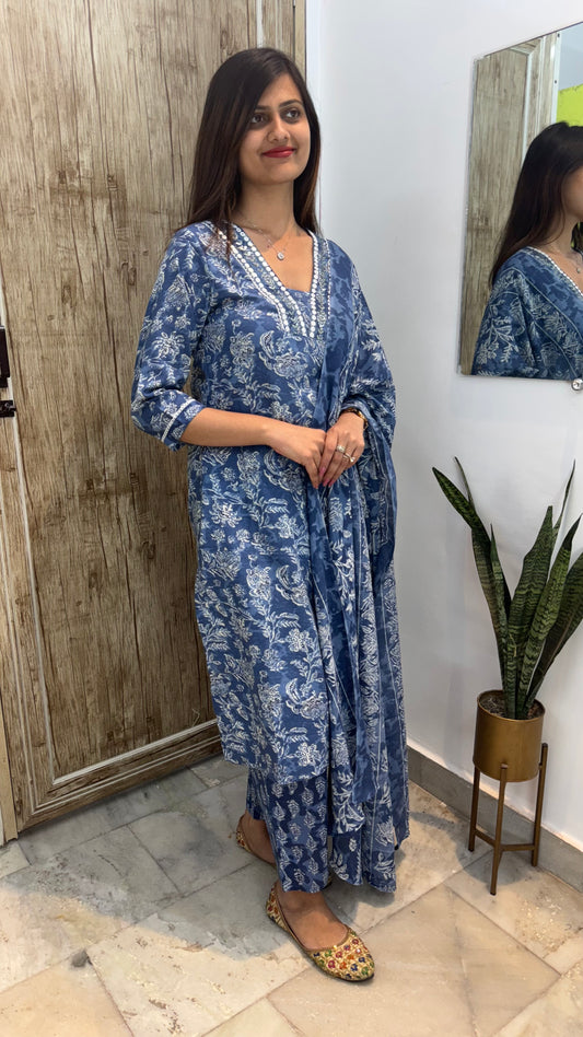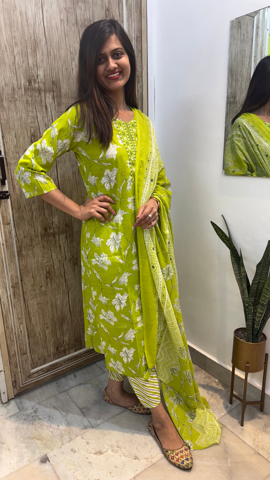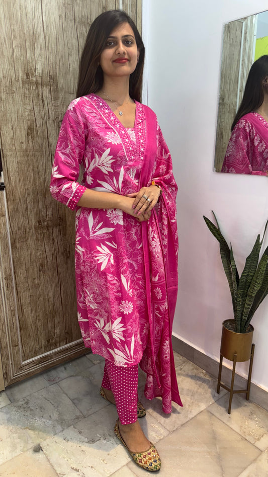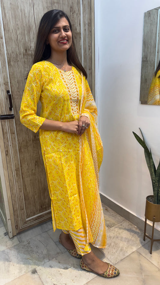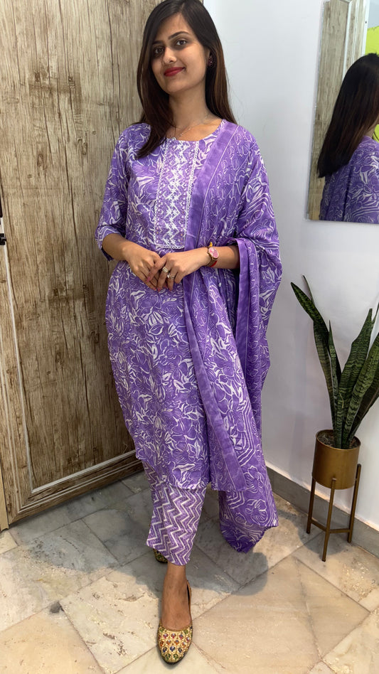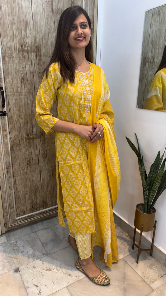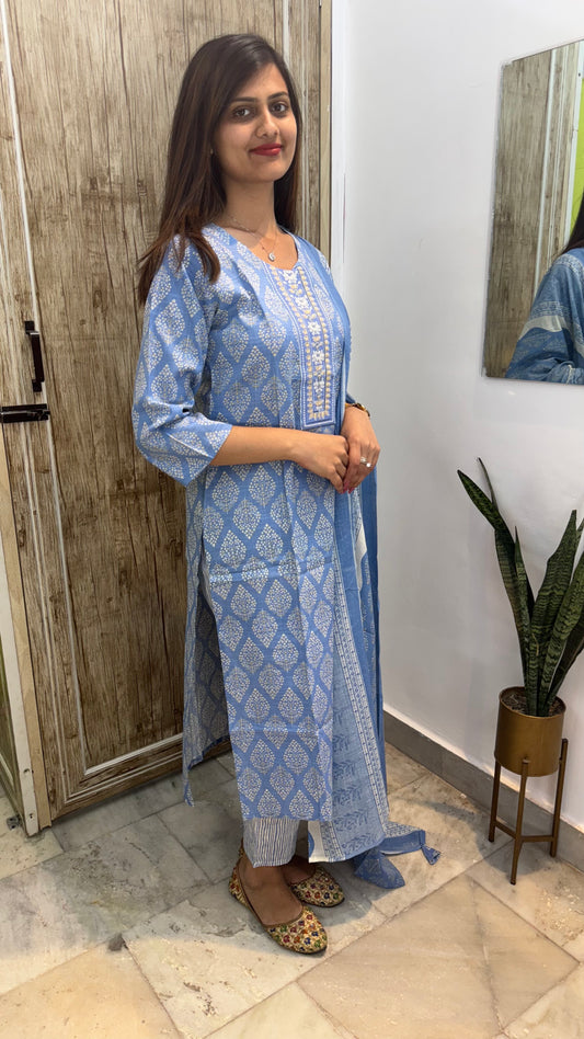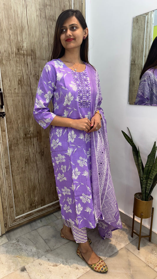 Beautiful Embroidered Cotton Suit Set with Mul Cotton Dupatta