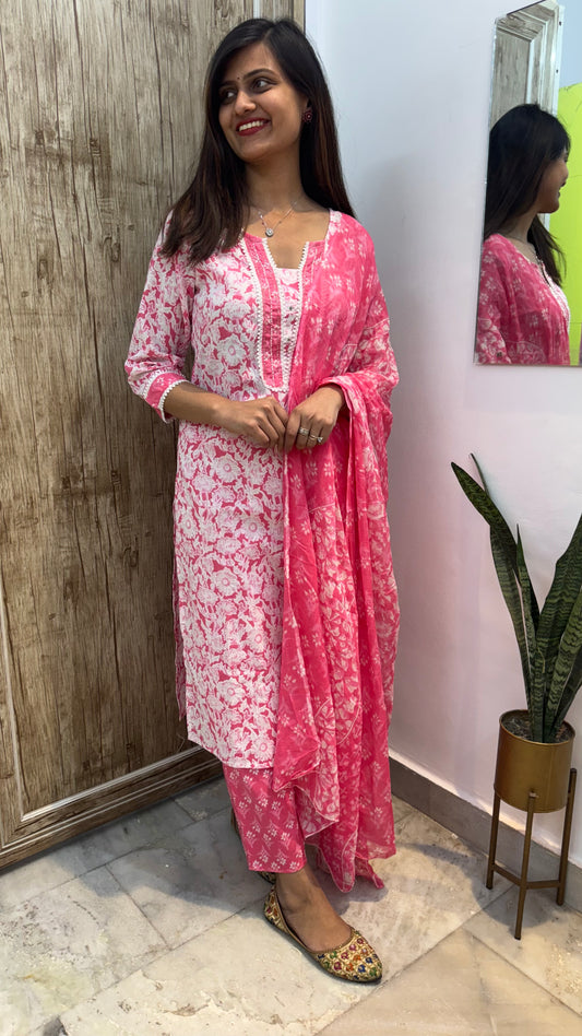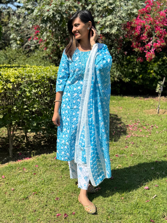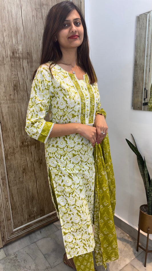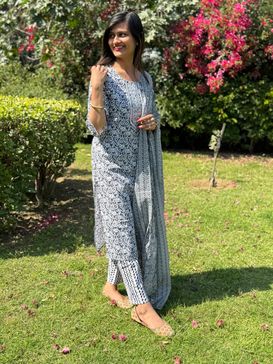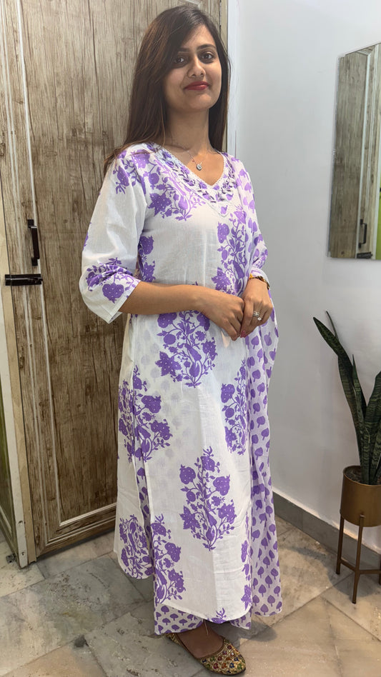 Beautiful Embroidered Cotton Suit Set with Mul Cotton Dupatta