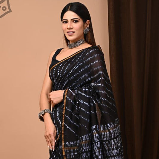 Black soft katan banarasi silk saree with meenakari zari weaving work
