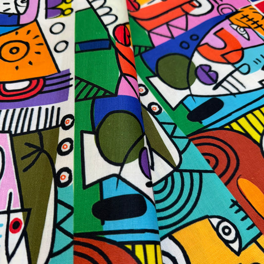 Premium Cotton Viscose (Abstract Face Print)