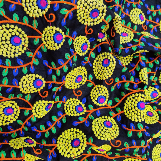 Designer Habutai Silk Embroidered Fabric (Heavy Border)